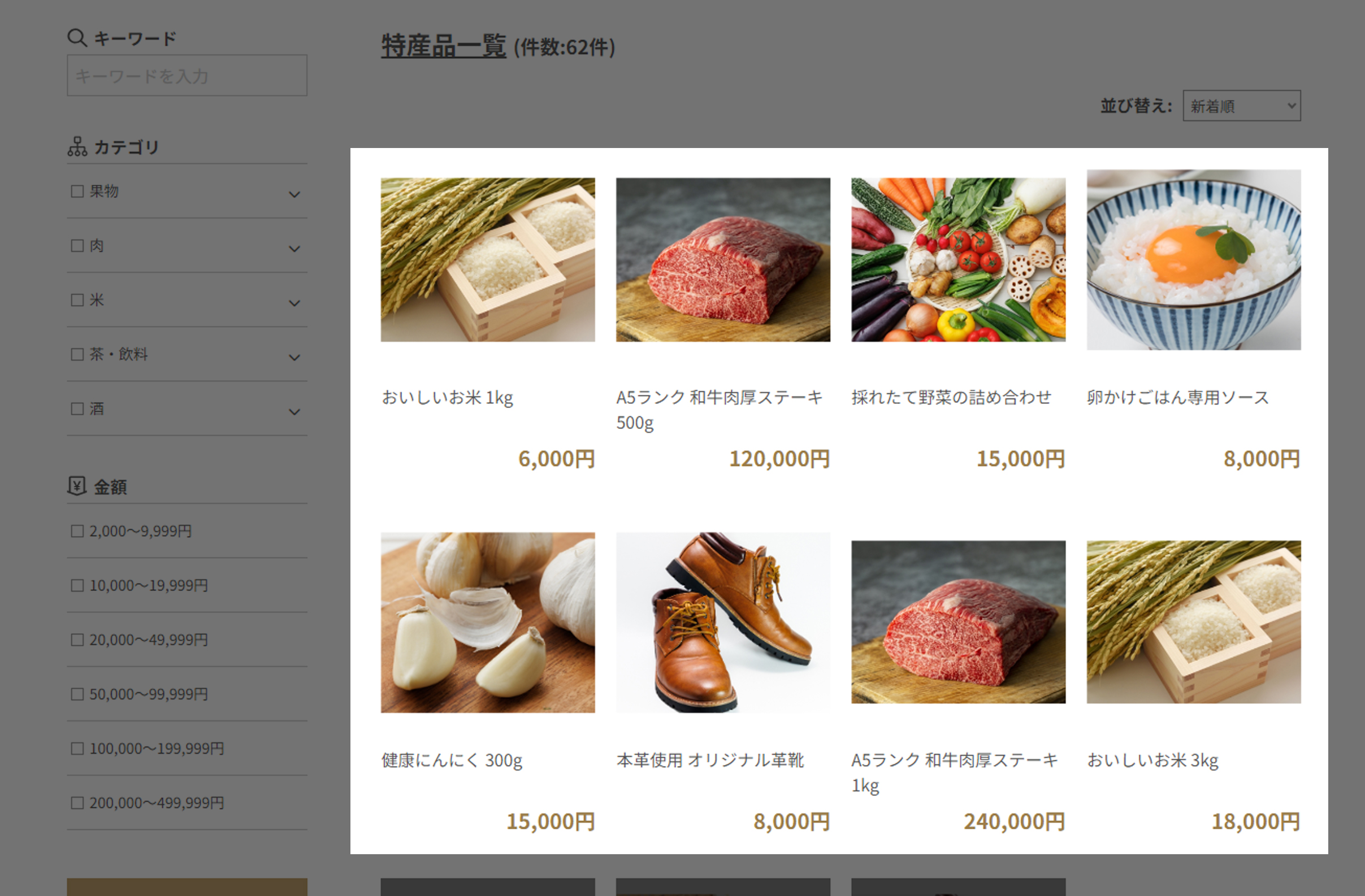 ご用意させていただいている、特産品の中からご自由にお選びいただけます。